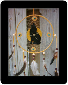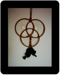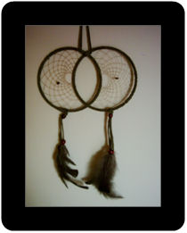 One of the legends is that the night air is filled with dreams - some good, some bad. The dreamcatcher, when hung, moves freely in the air and catches the dreams as they float by. The good dreams know their way through the webbing, slip through the centre hole and drift down the feather into the sleeper. The bad dreams get caught up in the webbing and get burned away with the rising of the new sun.